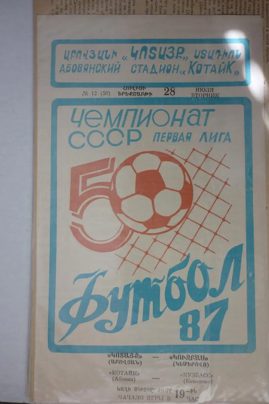 Котайк(Абовян) - Кузбасс(Кемерово) - 1987 - официальная программа
