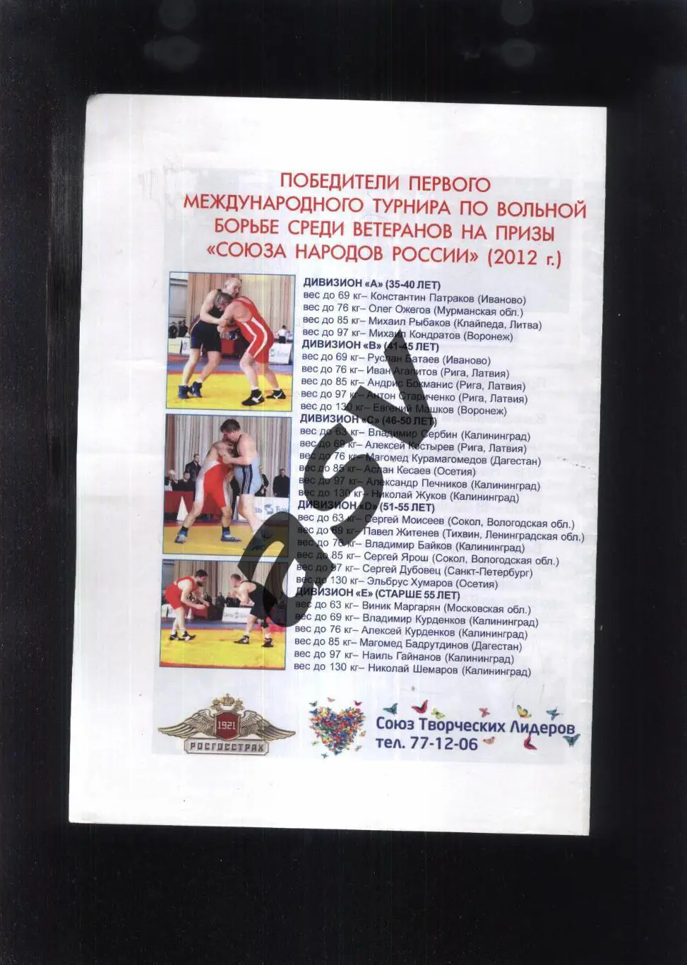 Вольная Борьба Международный Турнир Ветераны — 07.04.2013 Калининград