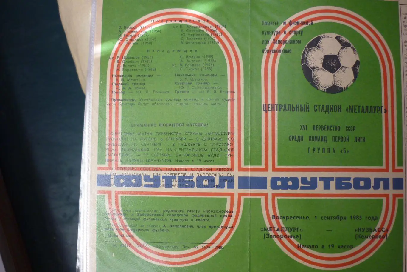 Металлург(Запорожье) - Кузбасс(Кемерово) - 1985 - официальная программа