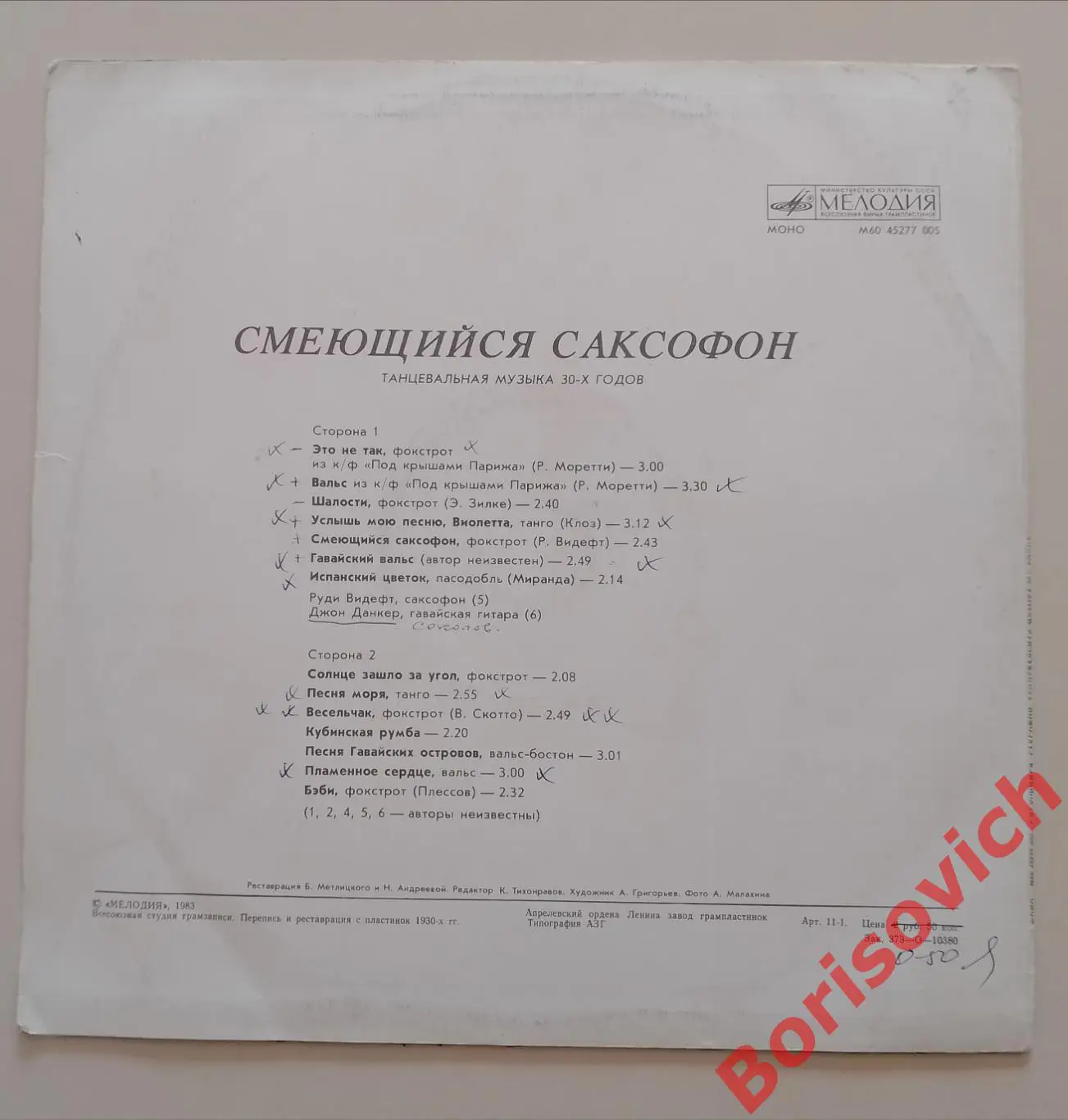 Танцевальная музыка 30 - х годов СМЕЮЩИЙСЯ САКСОФОН Мелодия 1983Танцевальная музыка 30 - х годов СМЕЮЩИЙСЯ САКСОФОН Мелодия 1983 1