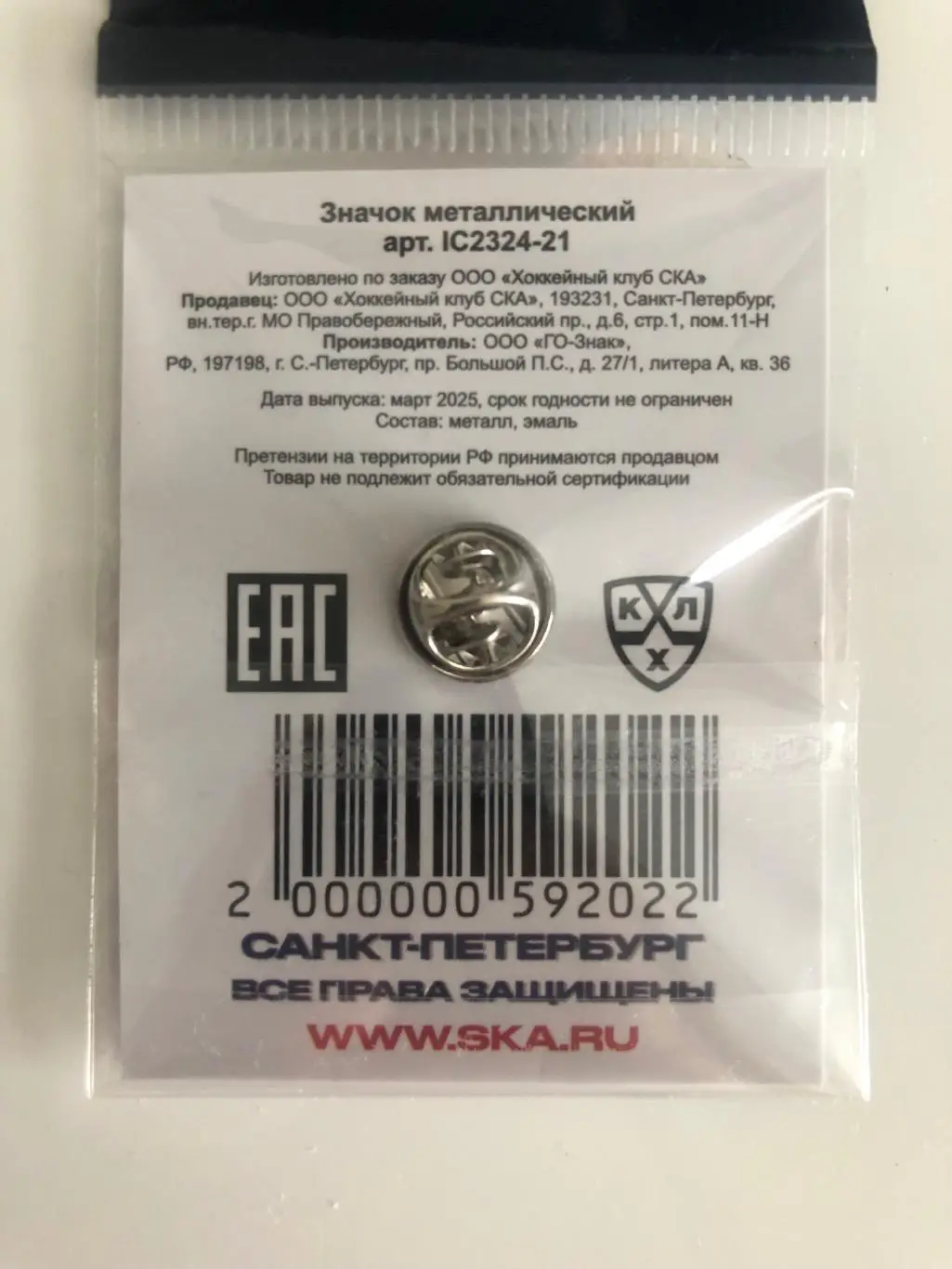 Знак ХК "СКА" лого. Крепление цанга. Металл. Новый в упаковке. Официальная продукция.