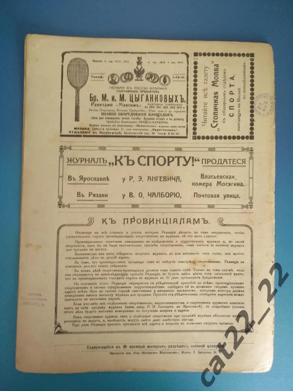 Издание:К Спорту.16.1916.Москва,Нижний Новгород,Рязань,Одесса,Подольск,Каменское