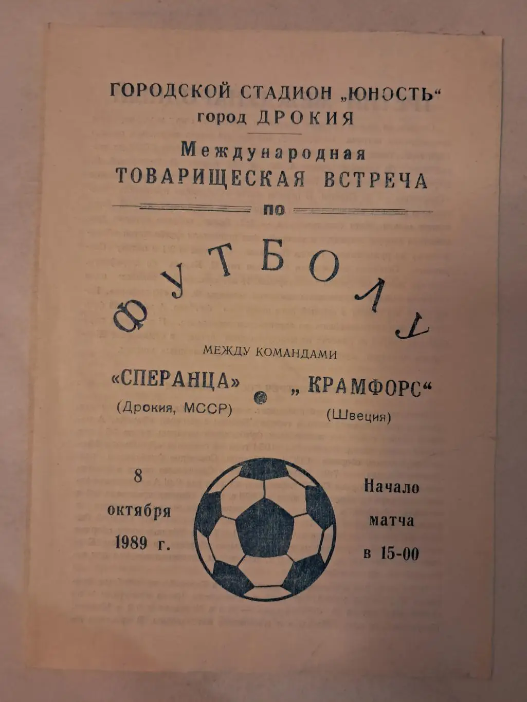 Сперанца Дрокия СССР - Крамфорс Швеция 8.10.1989