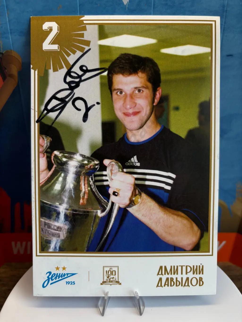 Автограф Дмитрия Давыдова на клубной карте к 100 летию Зенита, получен 25.05.2025 перед матчем легенд.