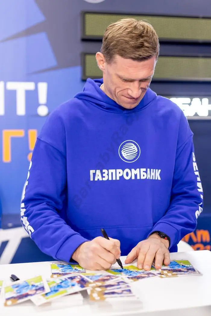 Автограф Константин Зырянов на клубной карте к 100 летию Зенита, получен 04.05.2025 перед матчем Зенит -Пари НН.