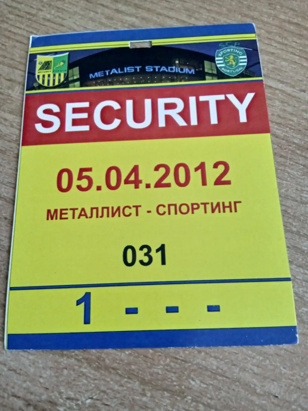 билет(пропуск).Металлист Харьков-Спортинг Португалия-5.04. 2012