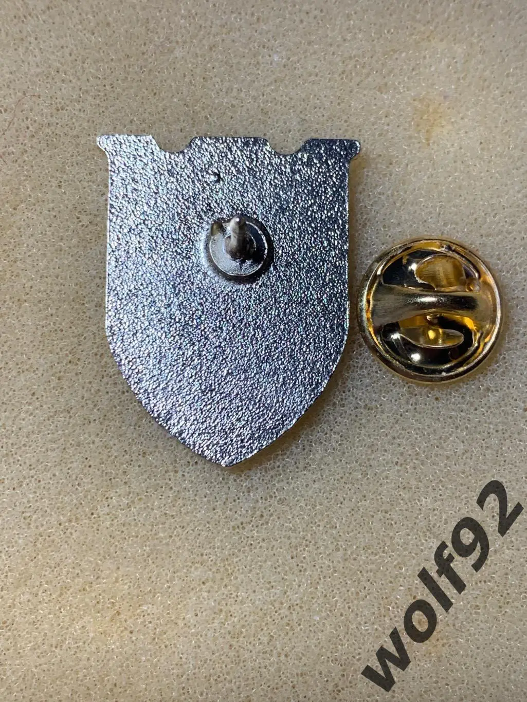 Тяж. металл (цвет металла - "золото"), синтетическая (твёрдая) эмаль (эпола), размер 26х20 мм, тип крепления - цанга, состояние - хор. - см. скан.