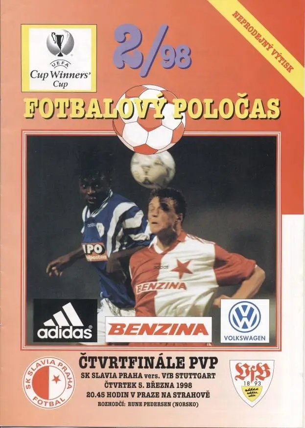 прог.Slavia Prague Czech/Чехія-VfB Stuttgart Germany/Німеч. 1998 match programme