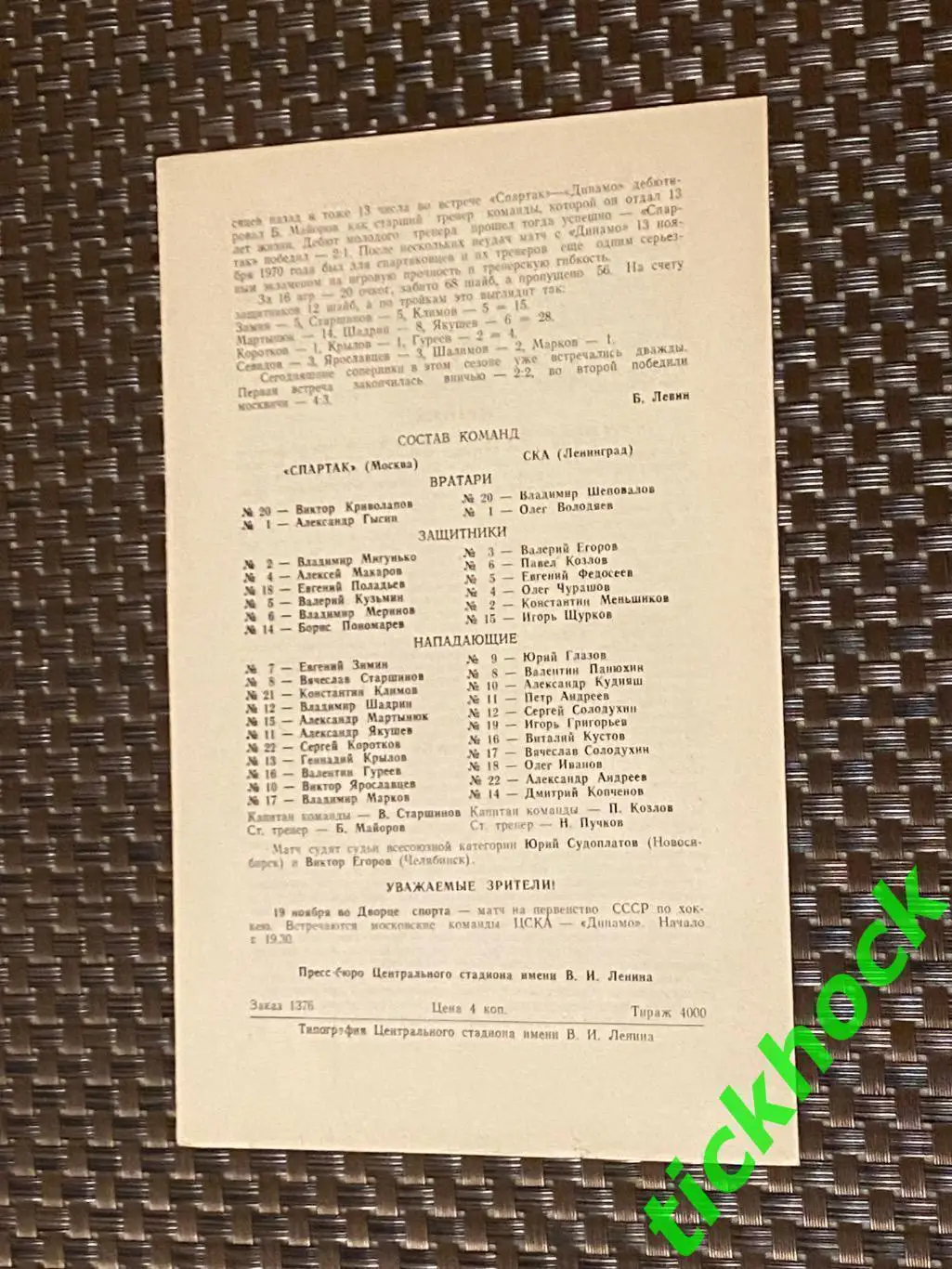 Спартак Москва - СКА Ленинград 17.11.1970 первенство СССР --SYСпартак Москва - СКА Ленинград 17.11.1970 первенство СССР --SY 1