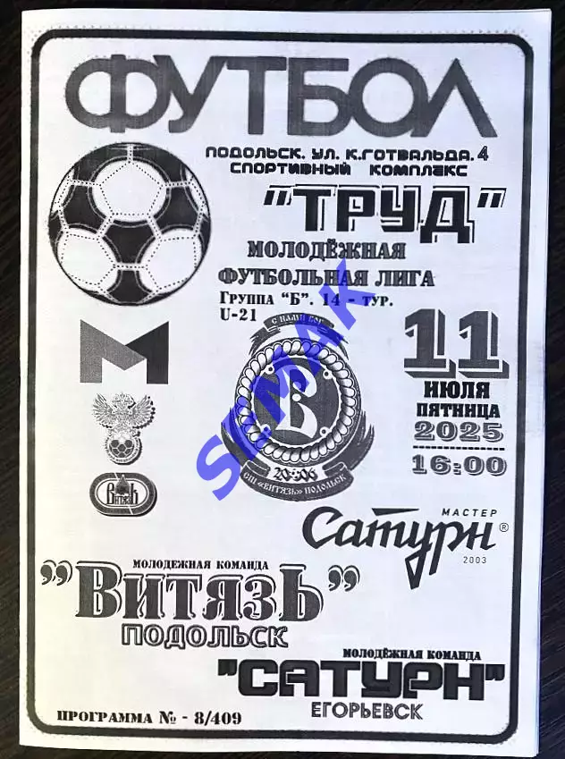 Пр-мма к матчу Молодёжной футбольной Лиги 2025 г. группа "Б"....