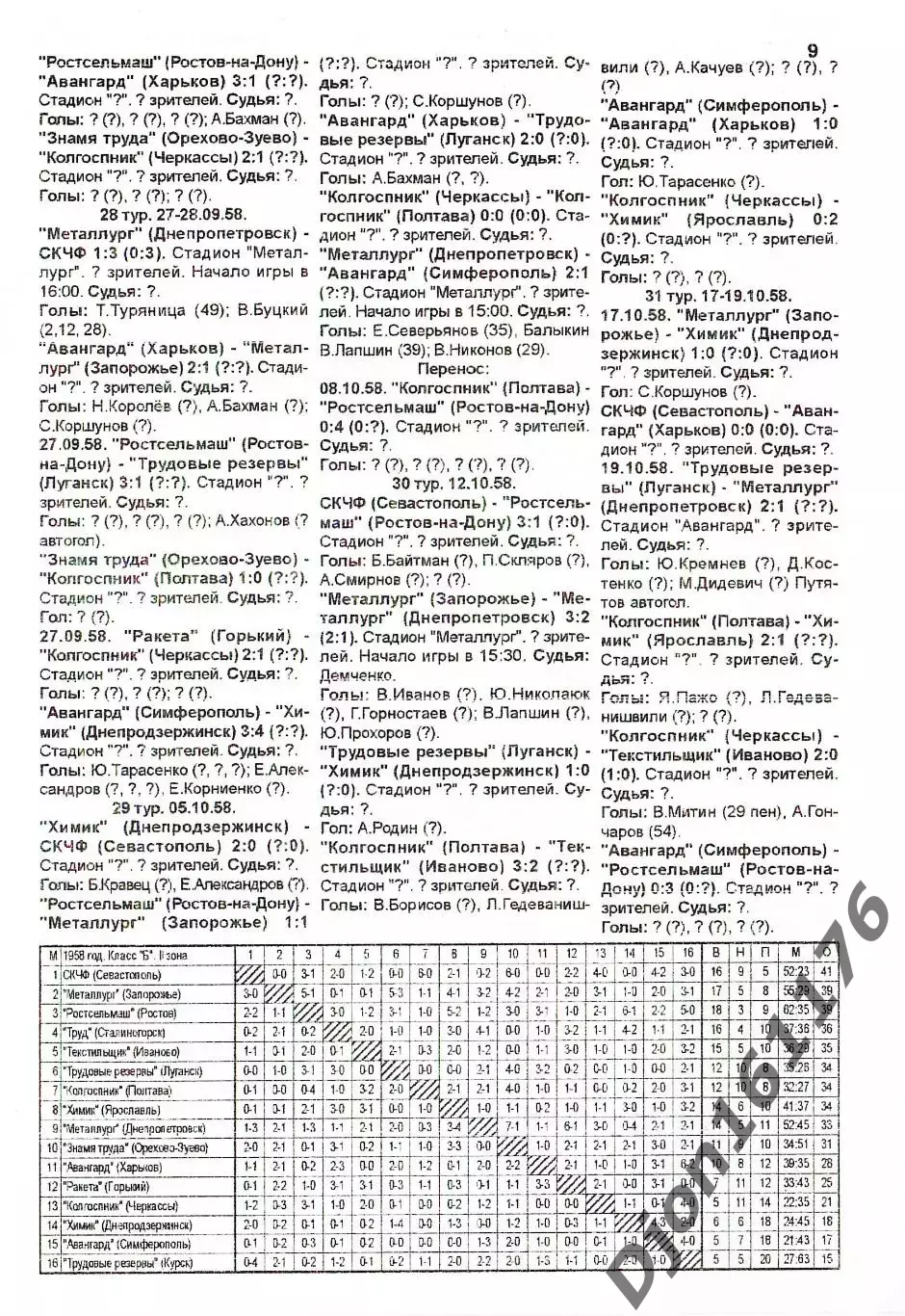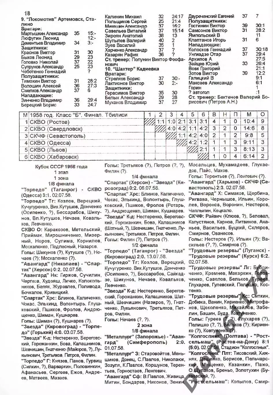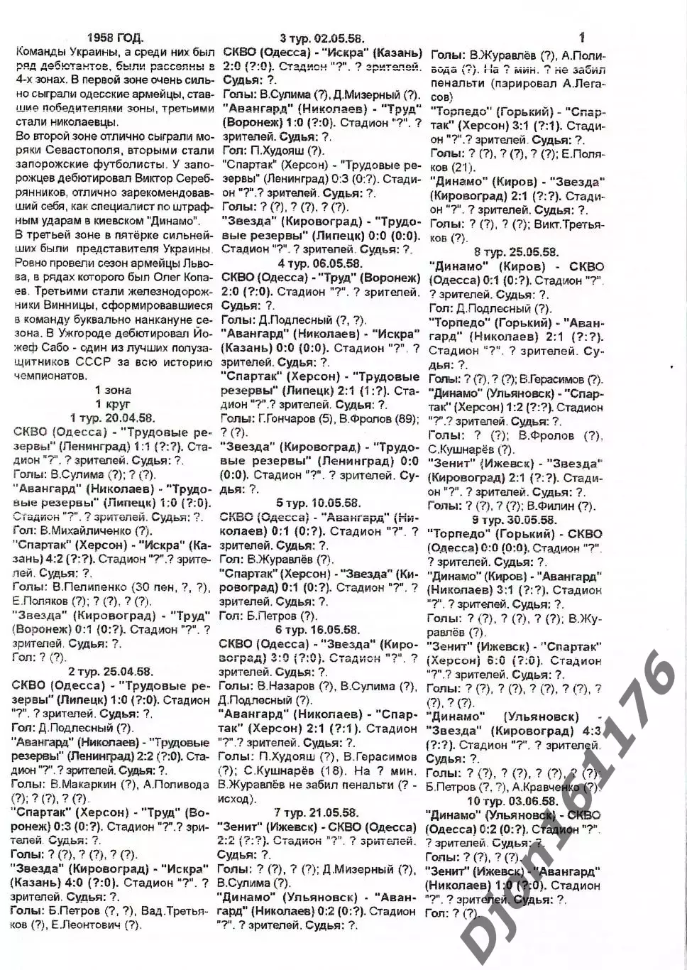 «Энциклопедия Украинского футбола. Класс «Б». 1958 год».