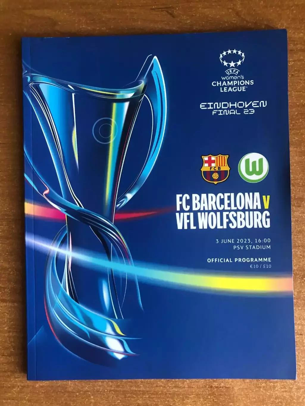 Программка с финала Женской Лиги чемпионов Барселона - Вольфсбург. 03.06.2023.