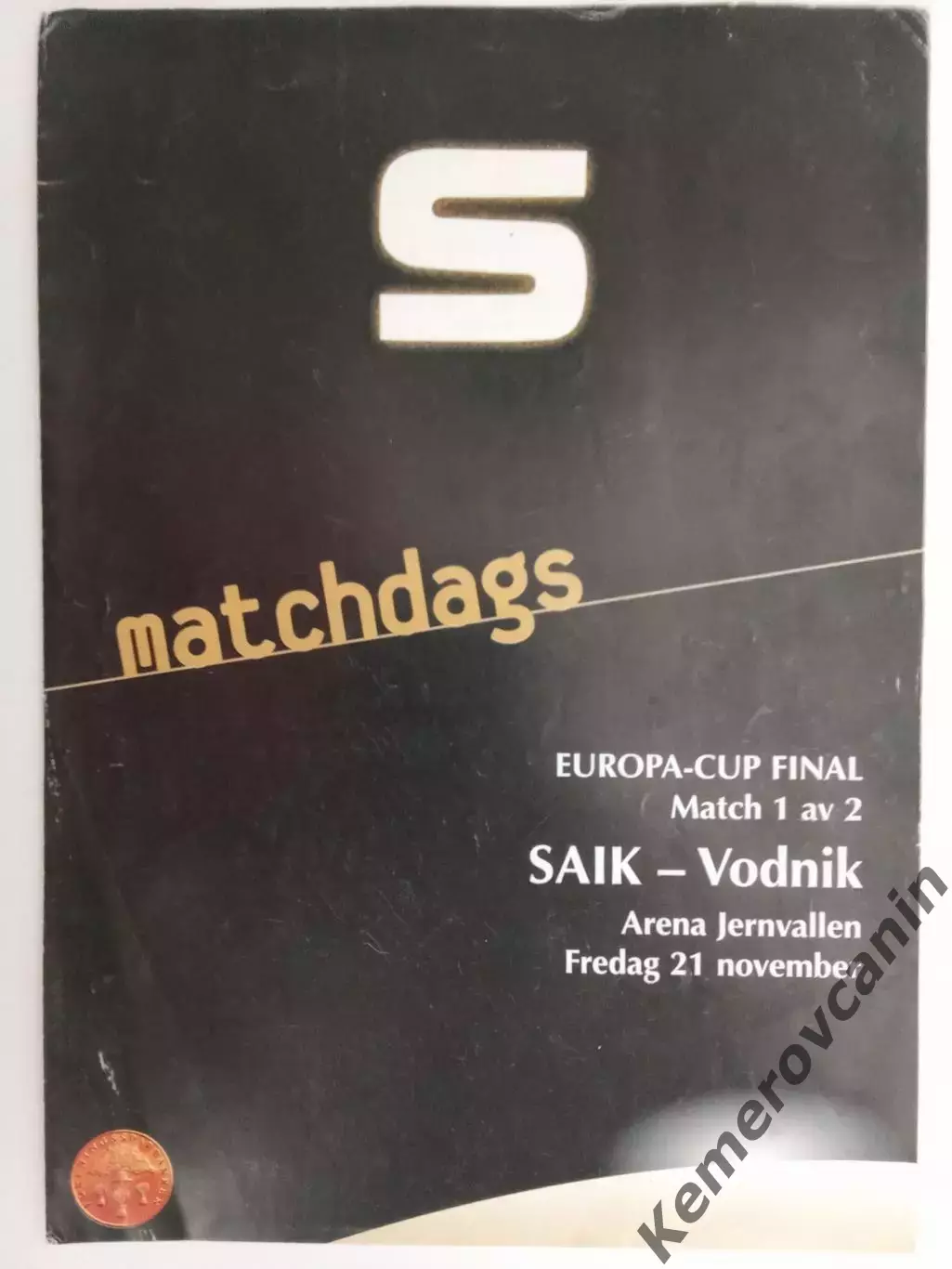 Сандвикен Швеция - Водник Архангельск 21 ноября 2003 год финал КЕЧ 1-й матч А4