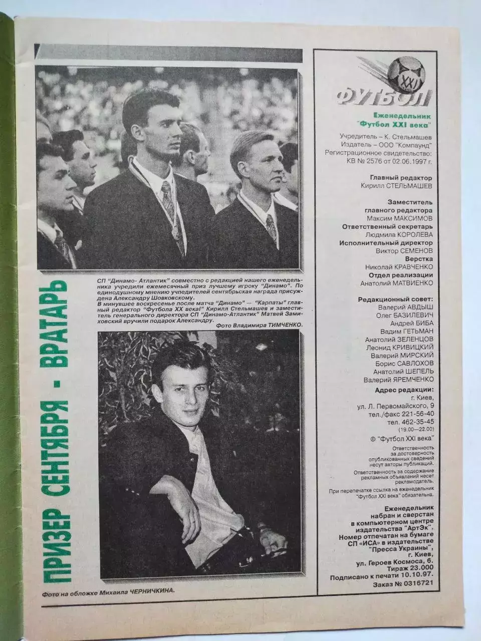 Украинский спортивный еженедельник Футбол XXI века № 41 за 1997 год