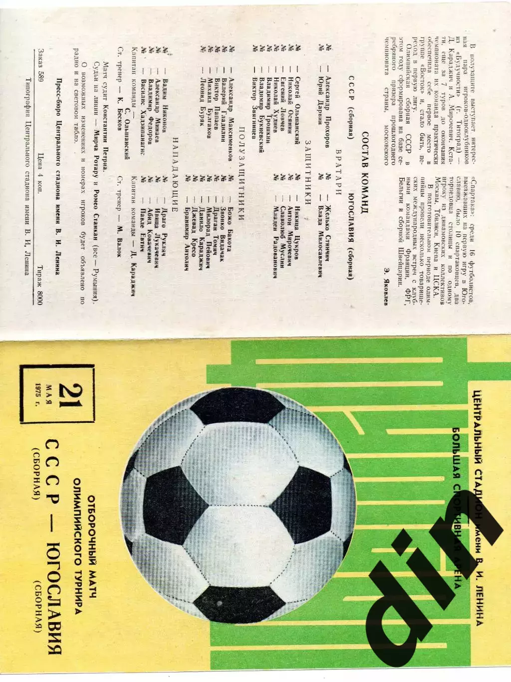 Сборная СССР - Сборная Югославия 21.05.1975 отбор Олимпиада