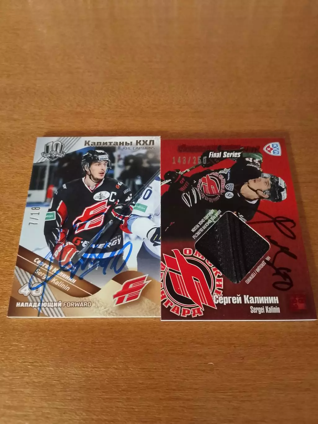 Сергей Калинин ХК Авангард Омск 2 карты с автографом