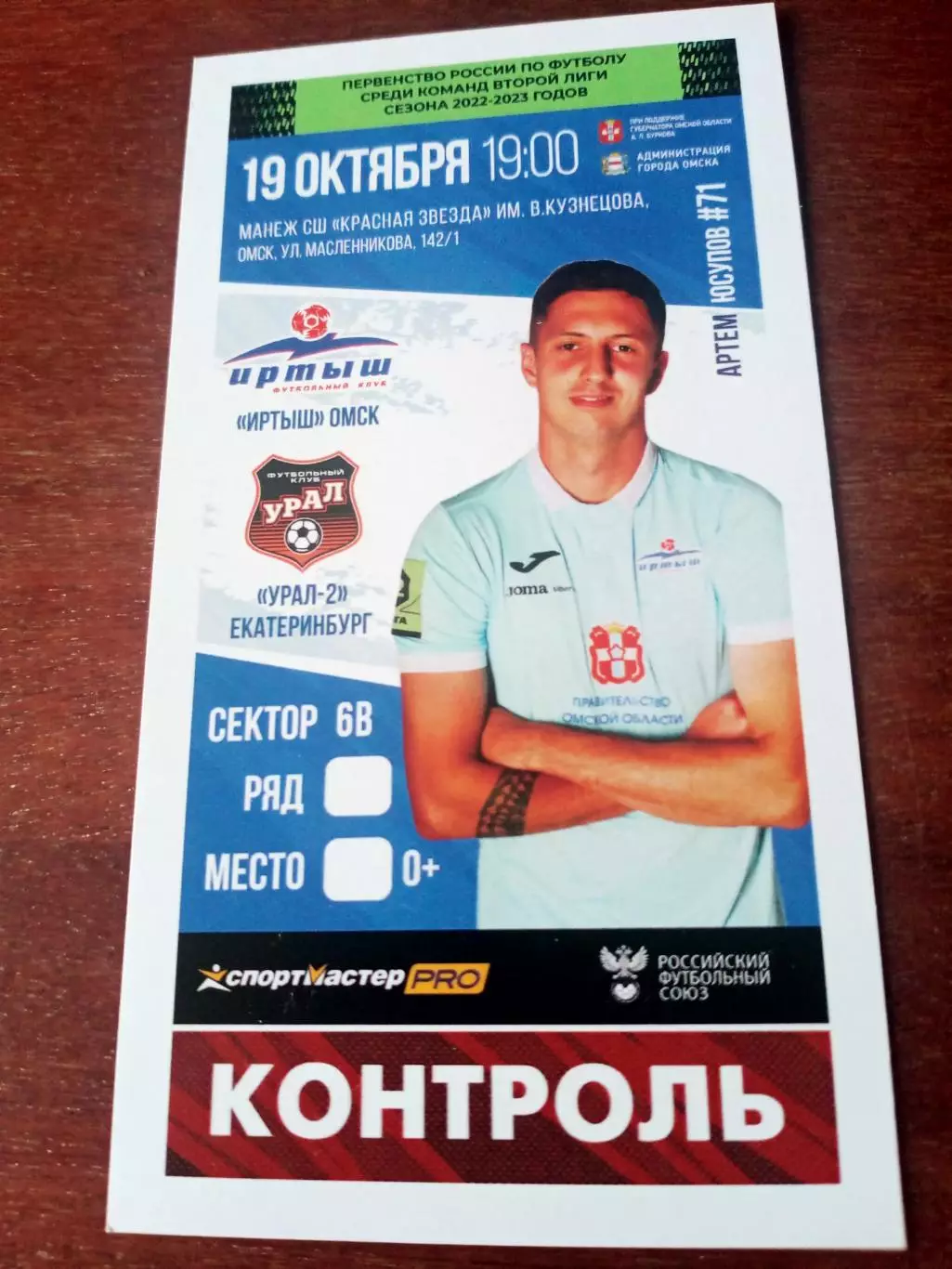 Иртыш Омск - Урал-2 Екатеринбург. 19 октября 2022 год - Билет