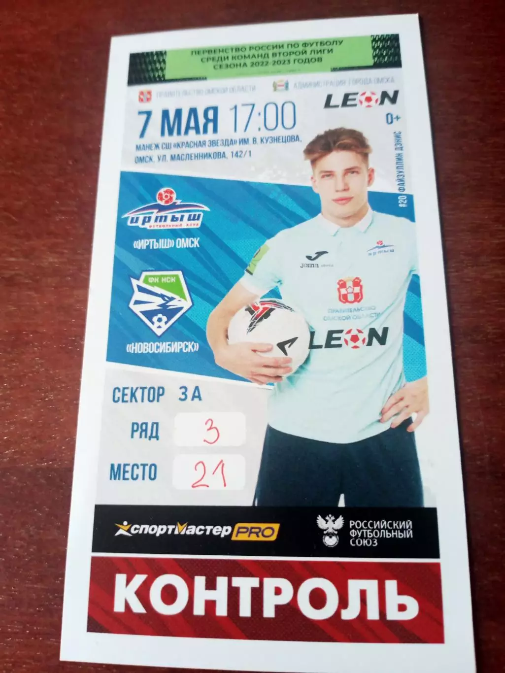 Иртыш Омск - ФК Новосибирск. 7 мая 2023 год - Билет