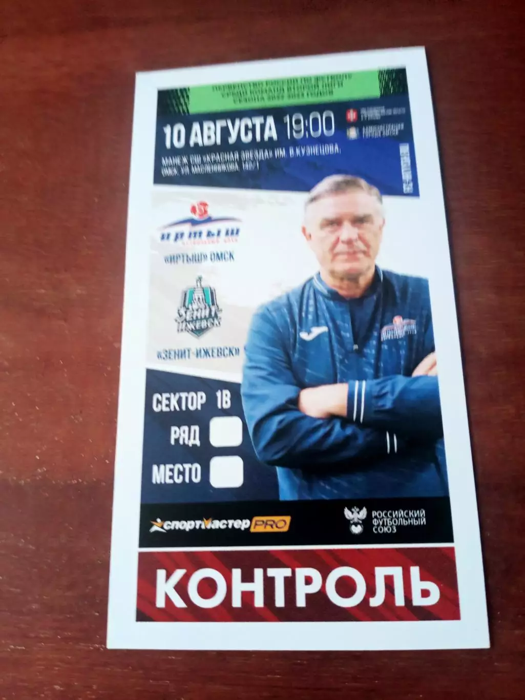 Иртыш Омск - Зенит Ижевск. 10 августа 2022 год - Билет