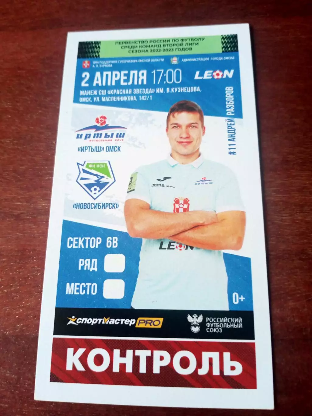 Иртыш Омск - ФК Новосибирск. 2 апреля 2023 год - Билет