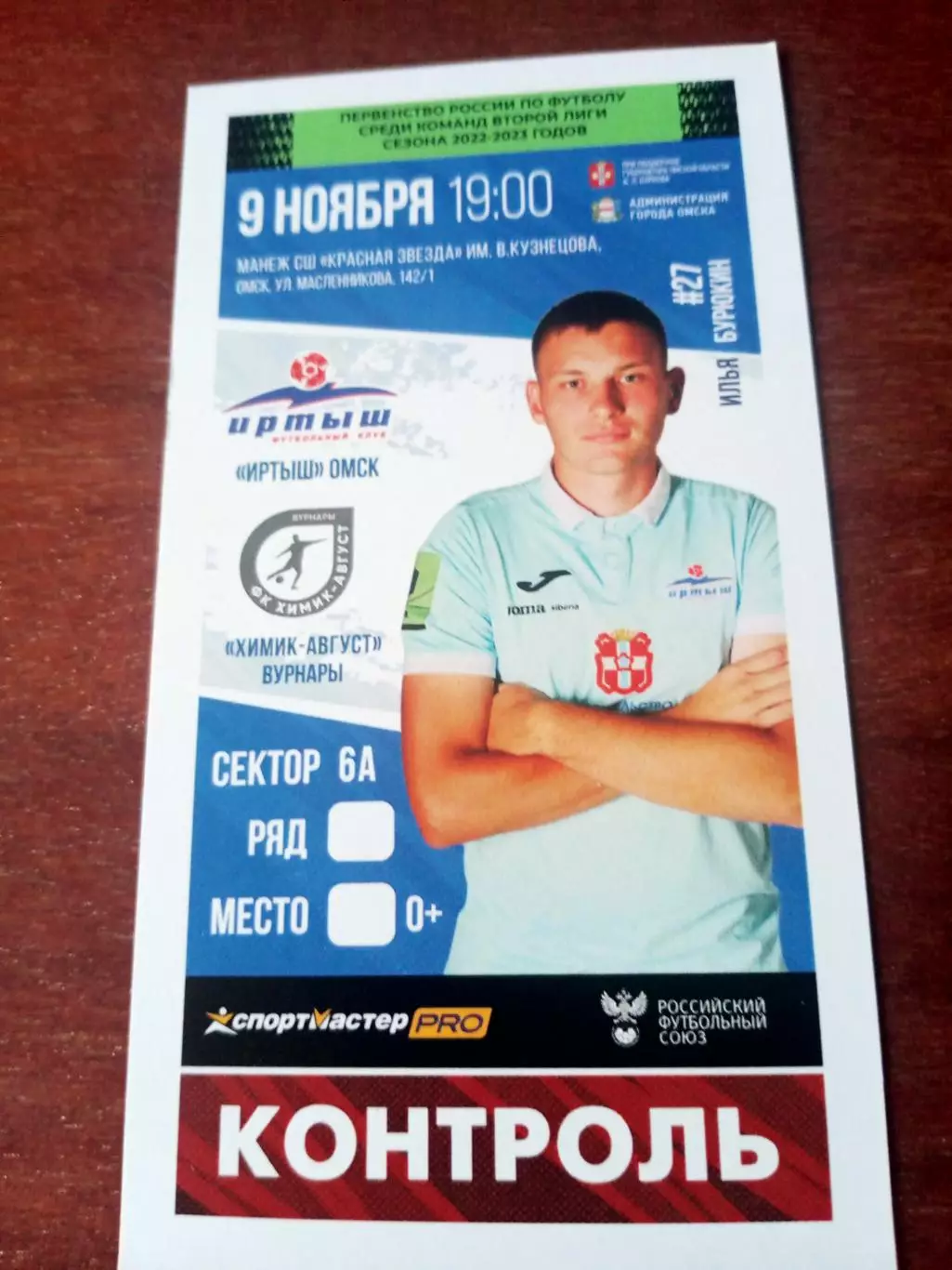Иртыш Омск - Химик-Август Вурнары. 9 ноября 2022 год - Билет