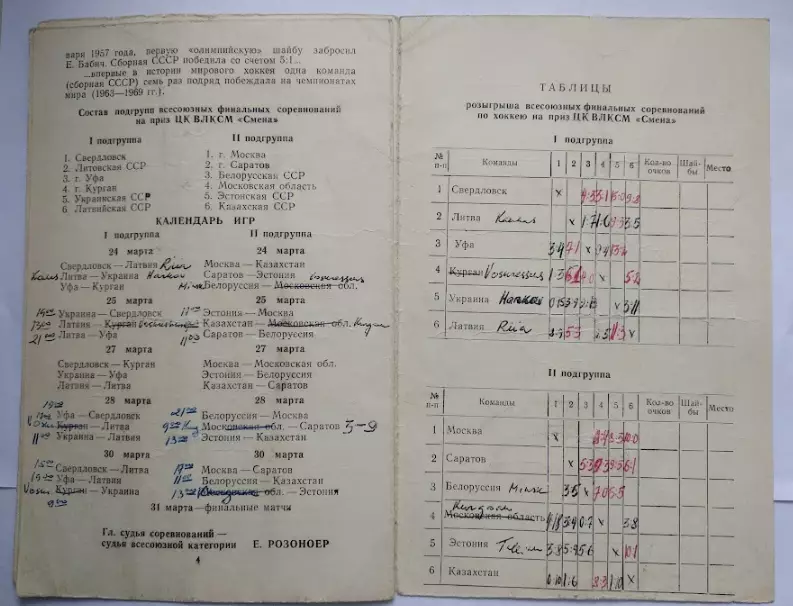 Участники команды : Свердловск, Калев, Уфа, Воскресенск, Харьков, Рига, Москва, Саратов, Минск, Таллин, Казахская ССР, Курган.