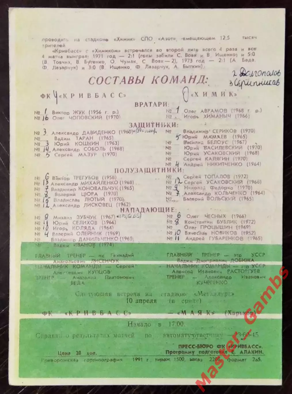 Кривбасс Кривой Рог - Химик Северодонецк 1991Кривбасс Кривой Рог - Химик Северодонецк 1991 1