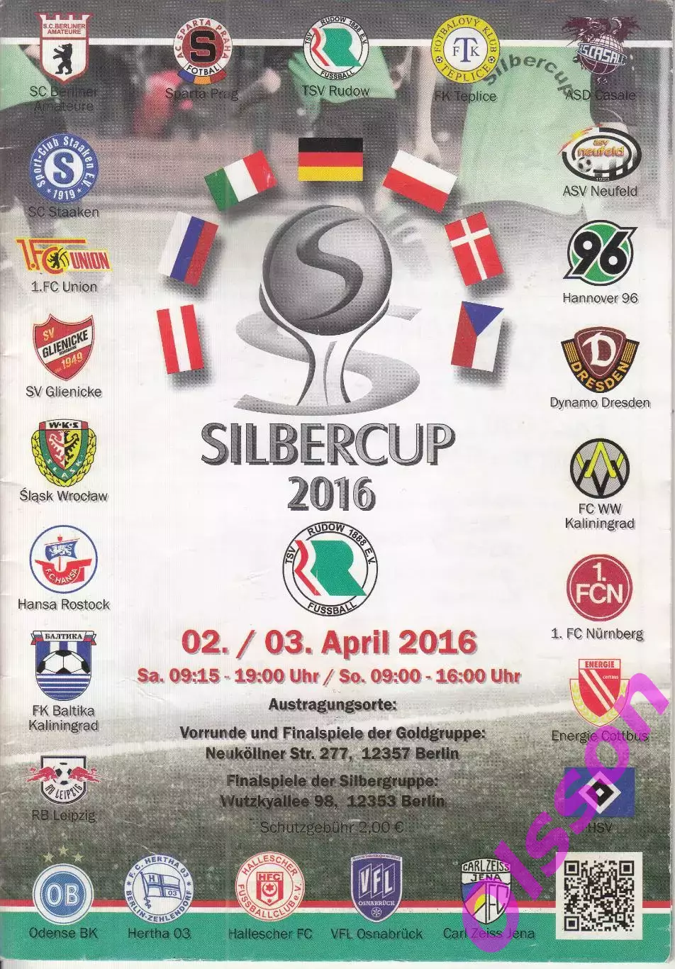 Юношеский турнир. SILBERCUP - 2016 Германия ( участники см. скан)*