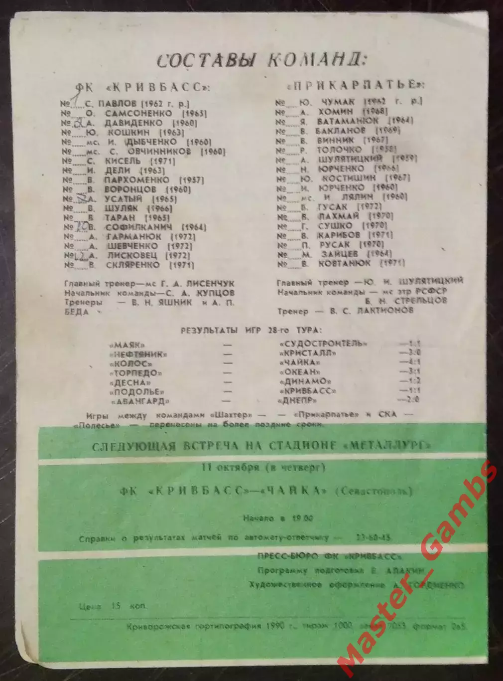 Кривбасс Кривой Рог - Прикарпатье Ивано - Франковск 1990Кривбасс Кривой Рог - Прикарпатье Ивано - Франковск 1990 1