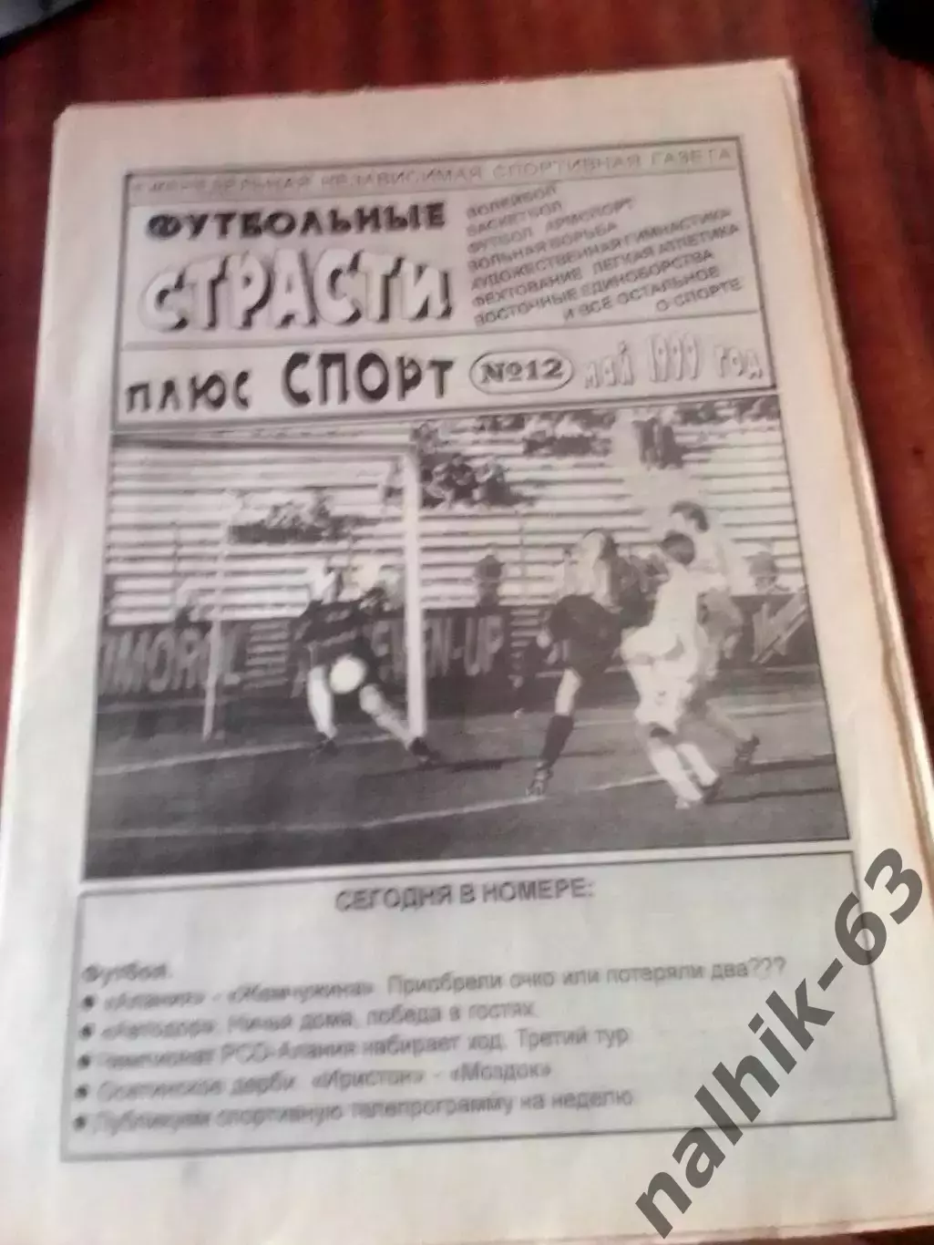 Алания Владикавказ-Жемчужина Сочи 1999 год\Газета Футбольные страсти Владикавказ
