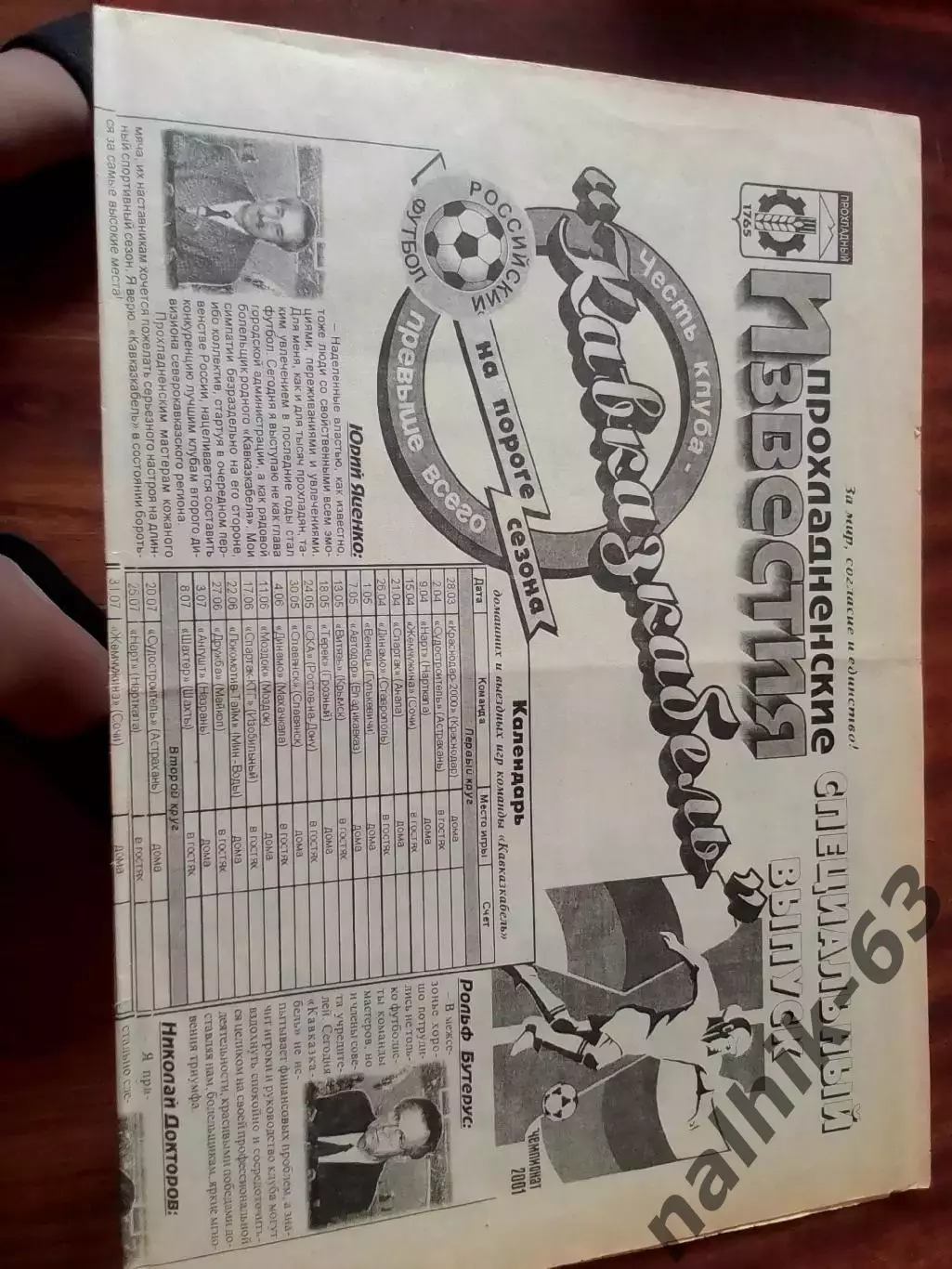Прохладненские Известия. Футбольный спецвыпуск от 24 марта 2001 года