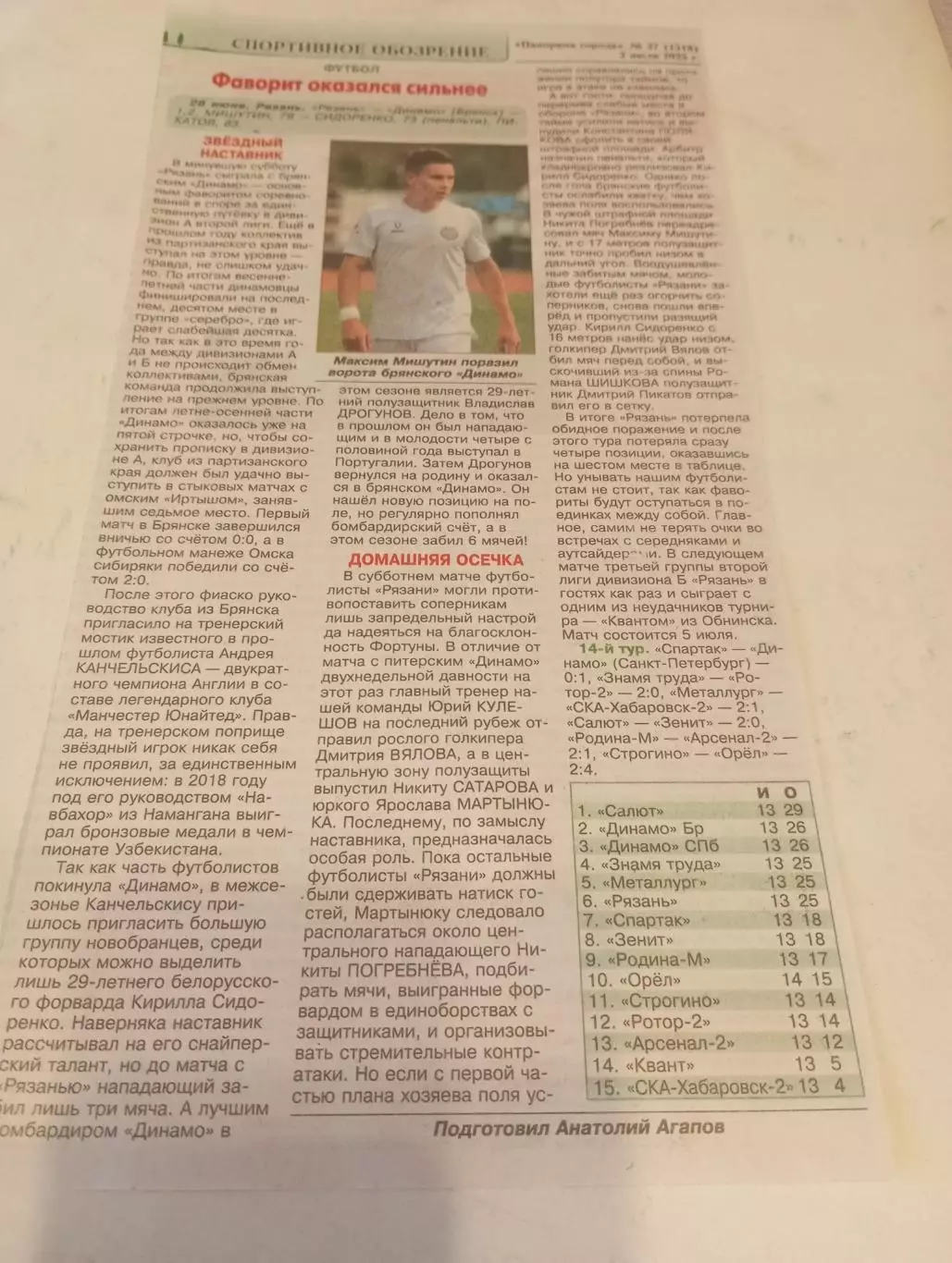 ФК. Рязань - Динамо (Брянск).28.06.2025. .Счёт (1-2). Отчёт о игре.