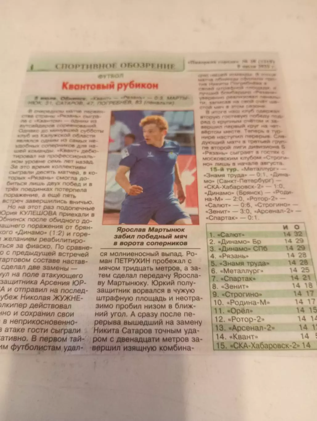 Квант (Обнинск )- ФК. Рязань5.07.2025.Счёт (0-3) отчёт о игре.