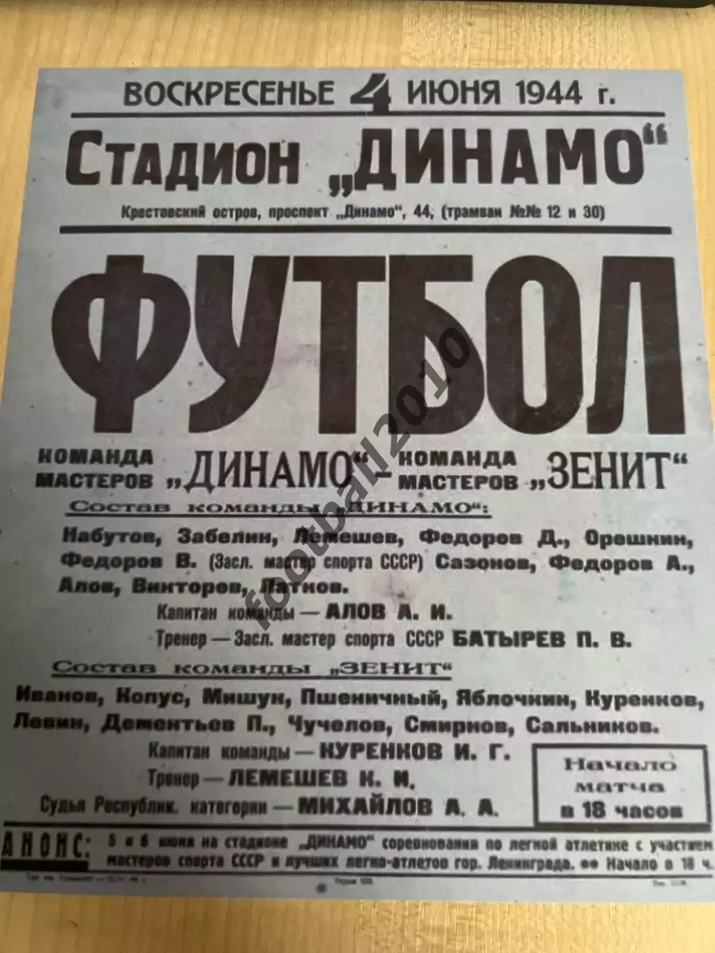 Динамо Ленинград - Зенит Ленинград 1944 ТМ