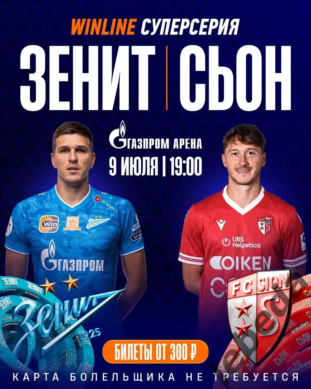 Зенит Санкт-Петербург - Сьон Швейцария- 2025 / 2026 г. (09.07.25.) товар.матч.