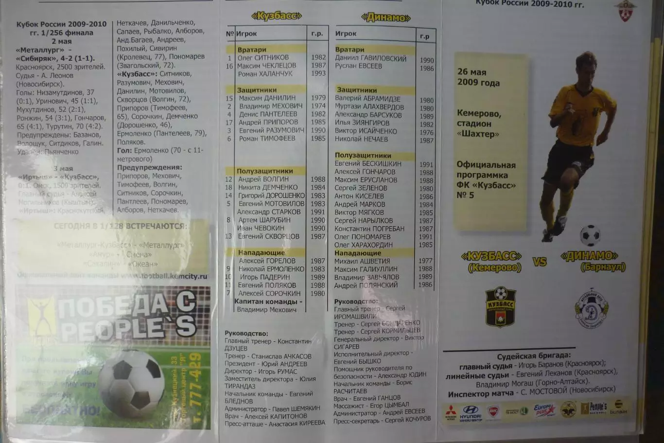 Кузбасс(Кемерово) - Динамо(Барнаул) - 2009 - официальная программа  Кубка России