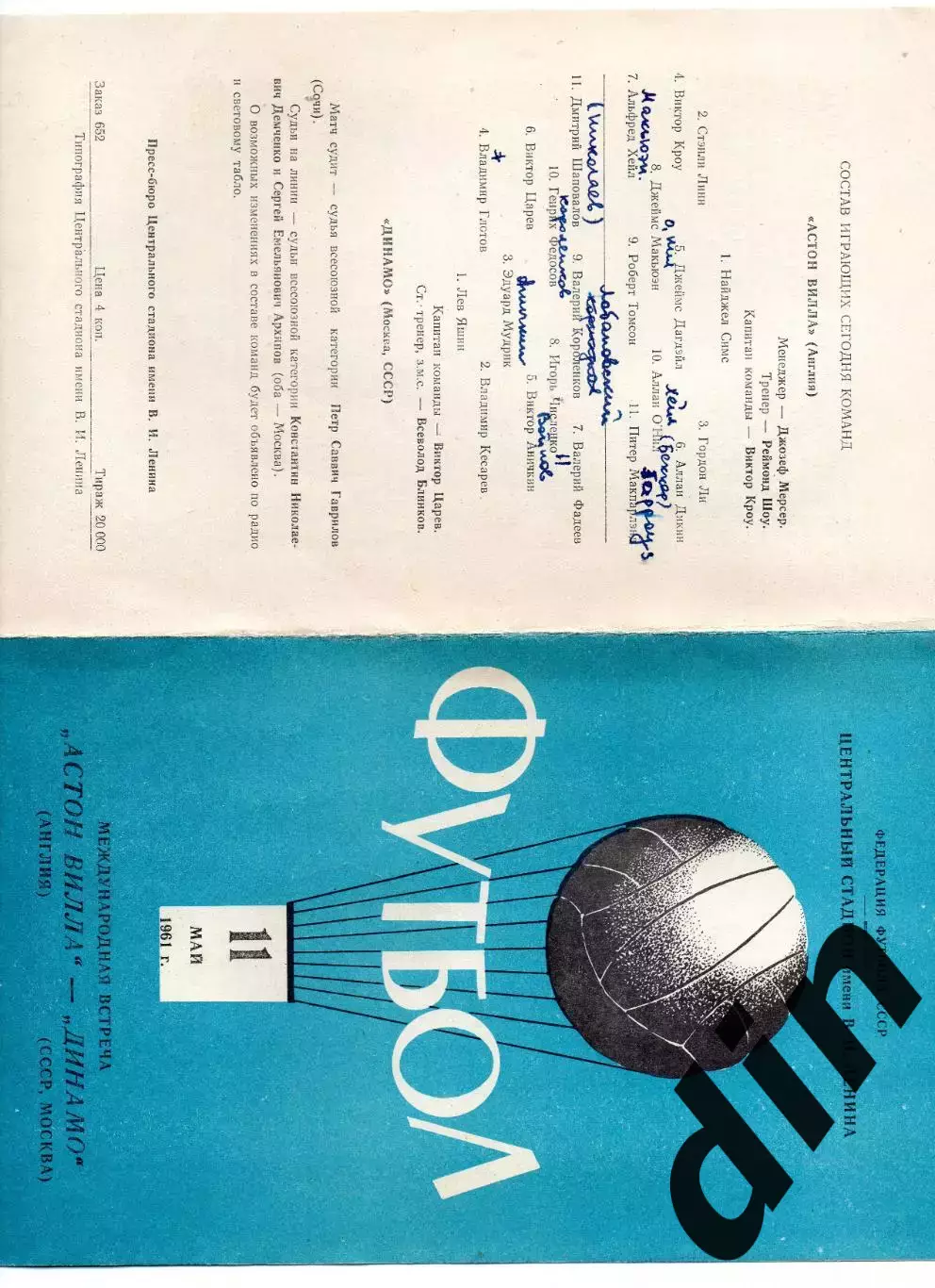 Динамо Москва - Астон Вилла Англия 11.05.1961