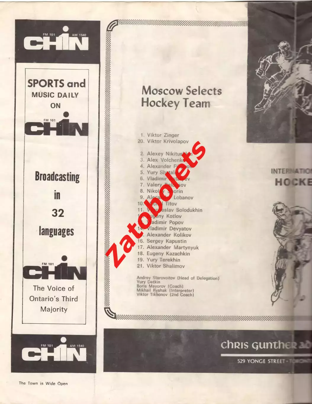 Торонто Мальборос Канада - сборная Москва СССР 20.12.1972