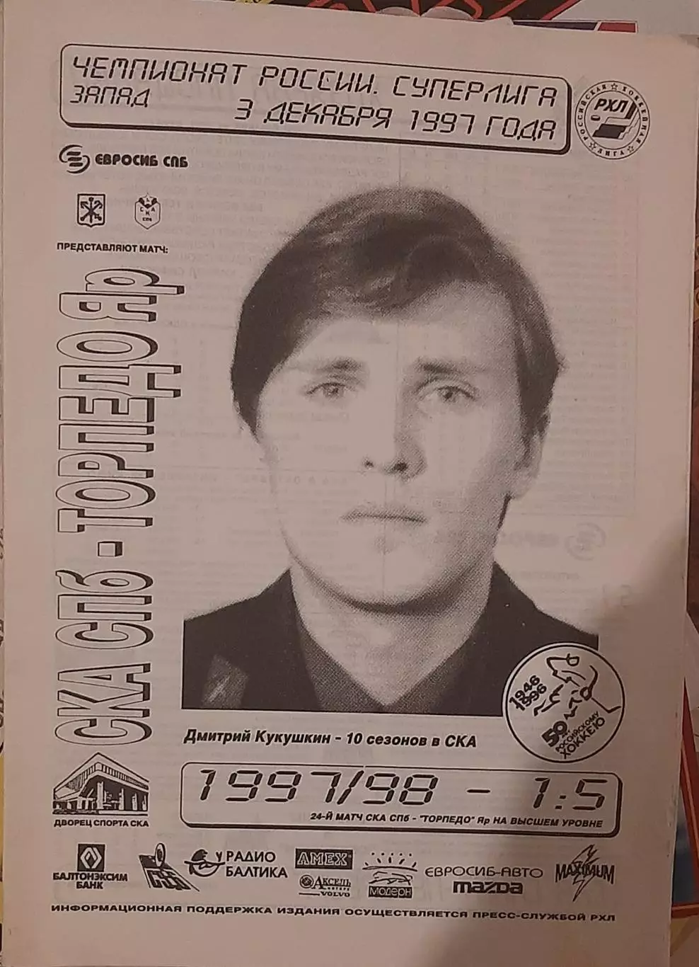 СКА Санкт-Петербург — Торпедо Ярославль 03.12.1997.