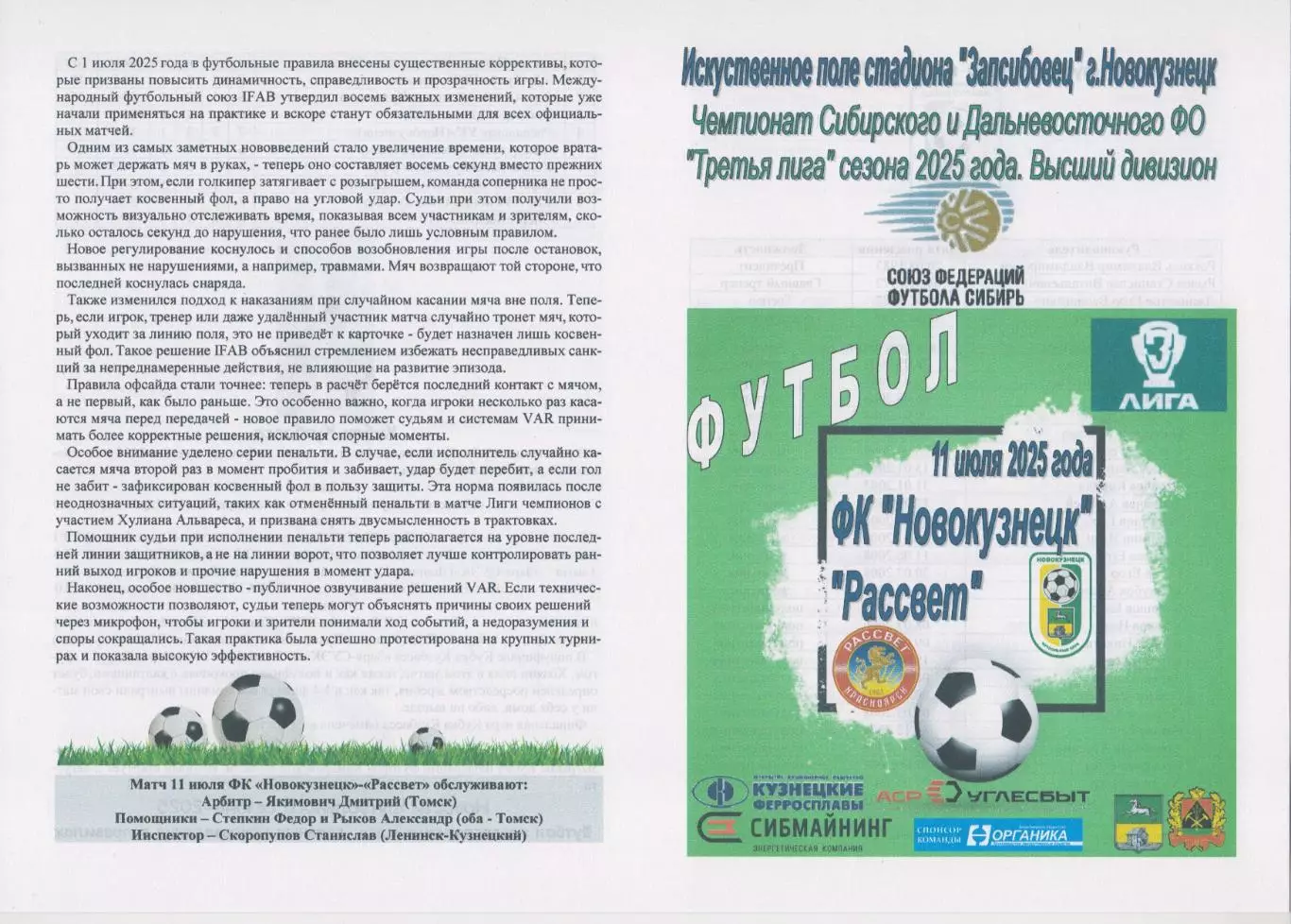 ФК Новокузнецк(Новокузнецк) - Рассвет(Красноярск) - 2025 - официальная программа, 8 стр.