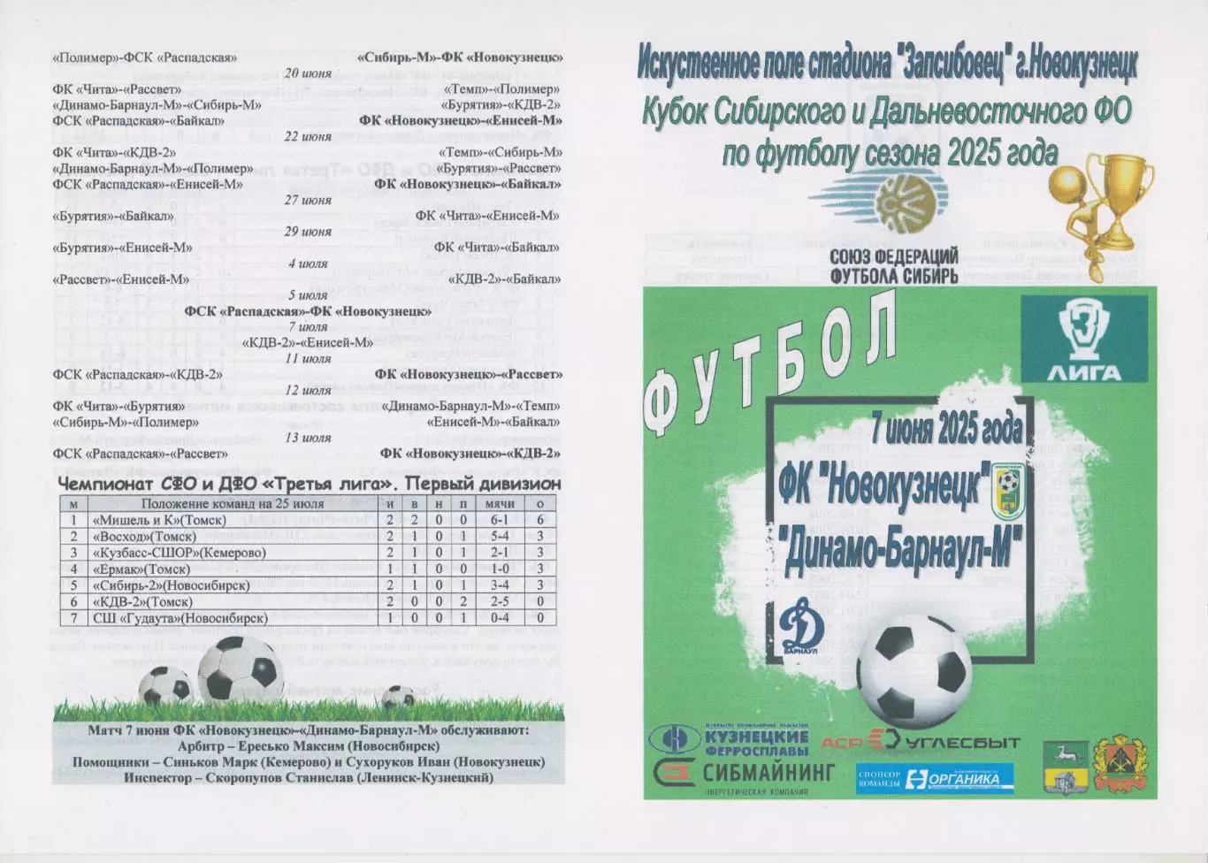 ФК Новокузнецк(Новокузнецк) - Динамо-Барнаул-М(Барнаул) - 2025 - официальная программа Кубка Сибири, 8 стр.