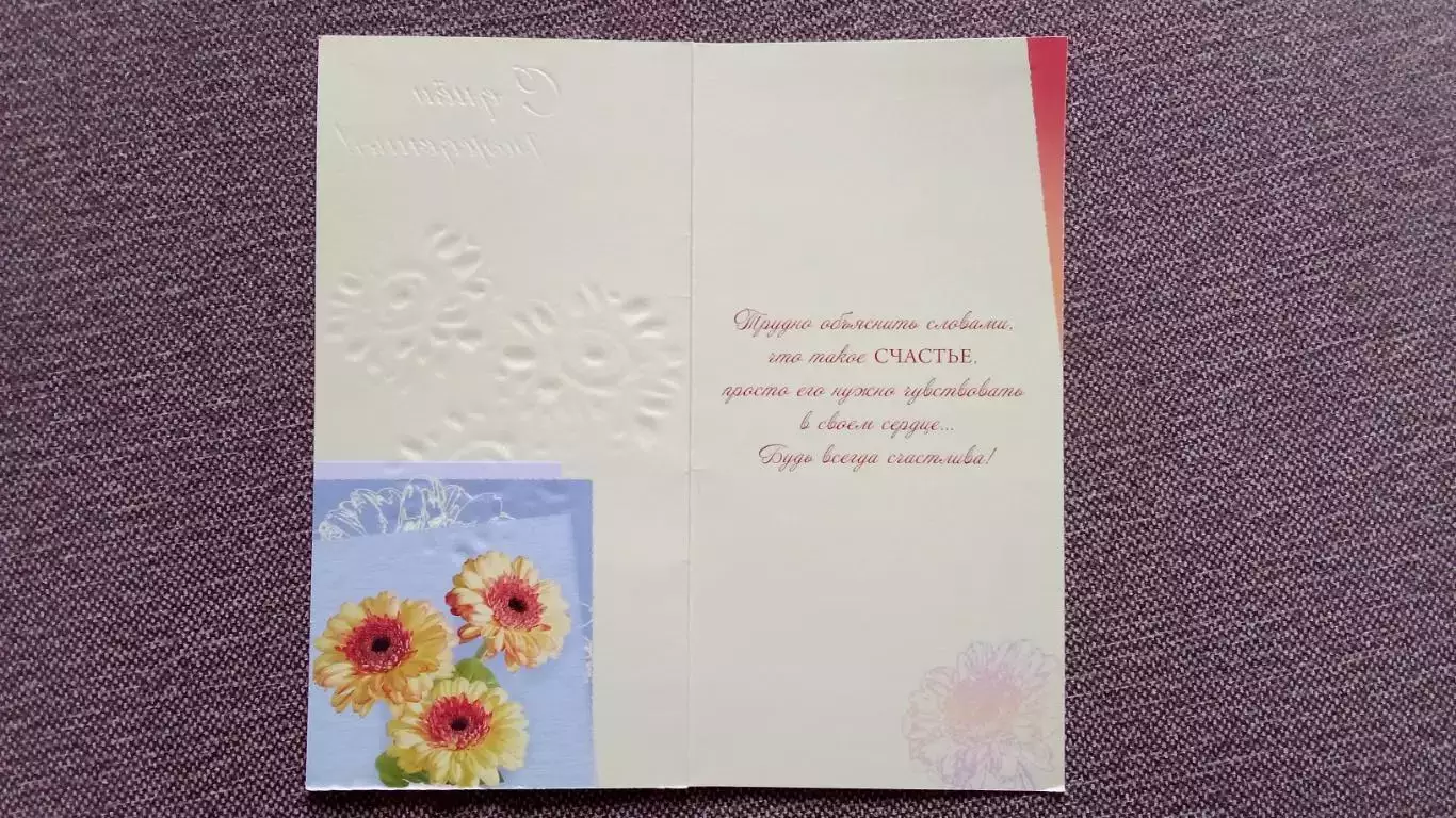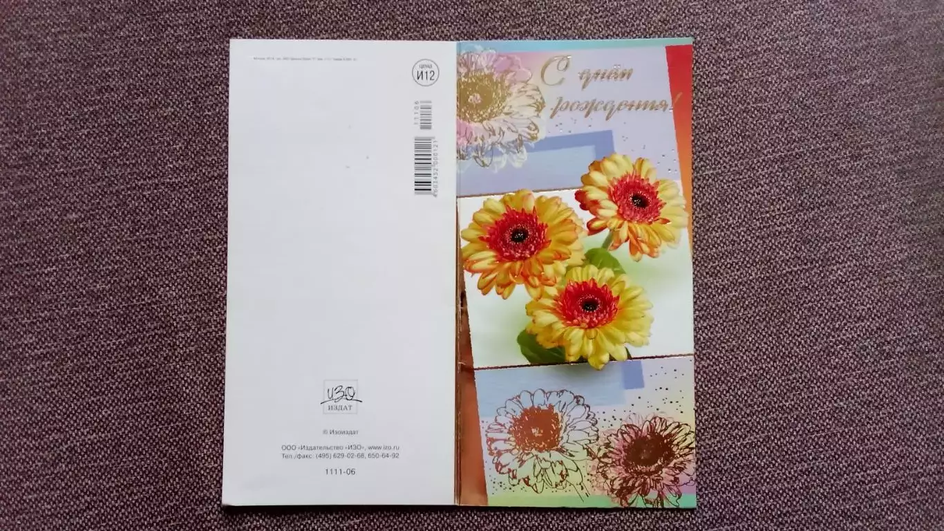 С днем рождения ! 2014 г. Поздравительная с разворотом ( Цветы Флора ) Россия