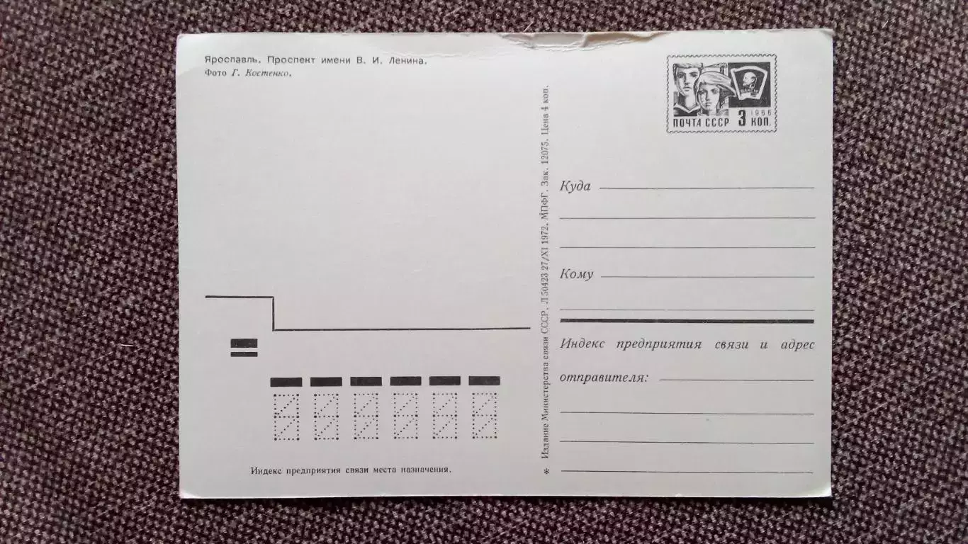 Города СССР : Ярославль - Проспект имени В.И. Ленина 1972 г. (почтовая с маркой)Города СССР : Ярославль - Проспект имени В.И. Ленина 1972 г. (почтовая с маркой) 1
