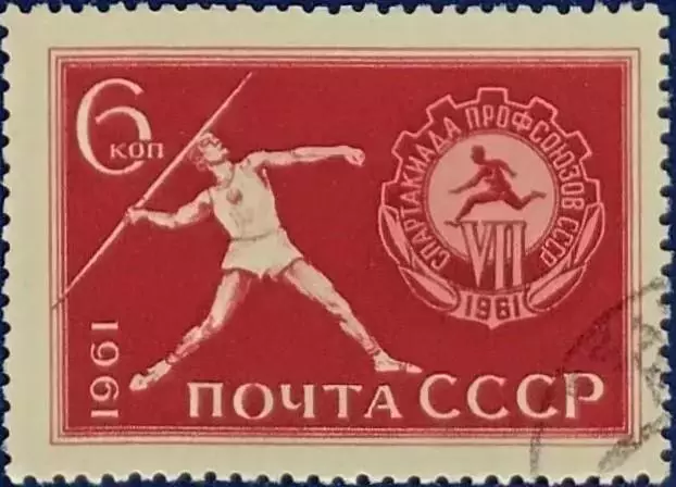 СССР 1961. Спартакиада профсоюзов СССР. Метание копья. Гашеная.