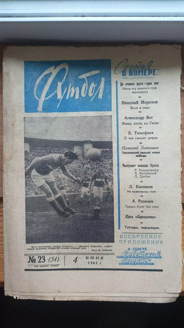 Еженедельник Футбол 1965, № 34, часть текста на обложке – красного цвета.