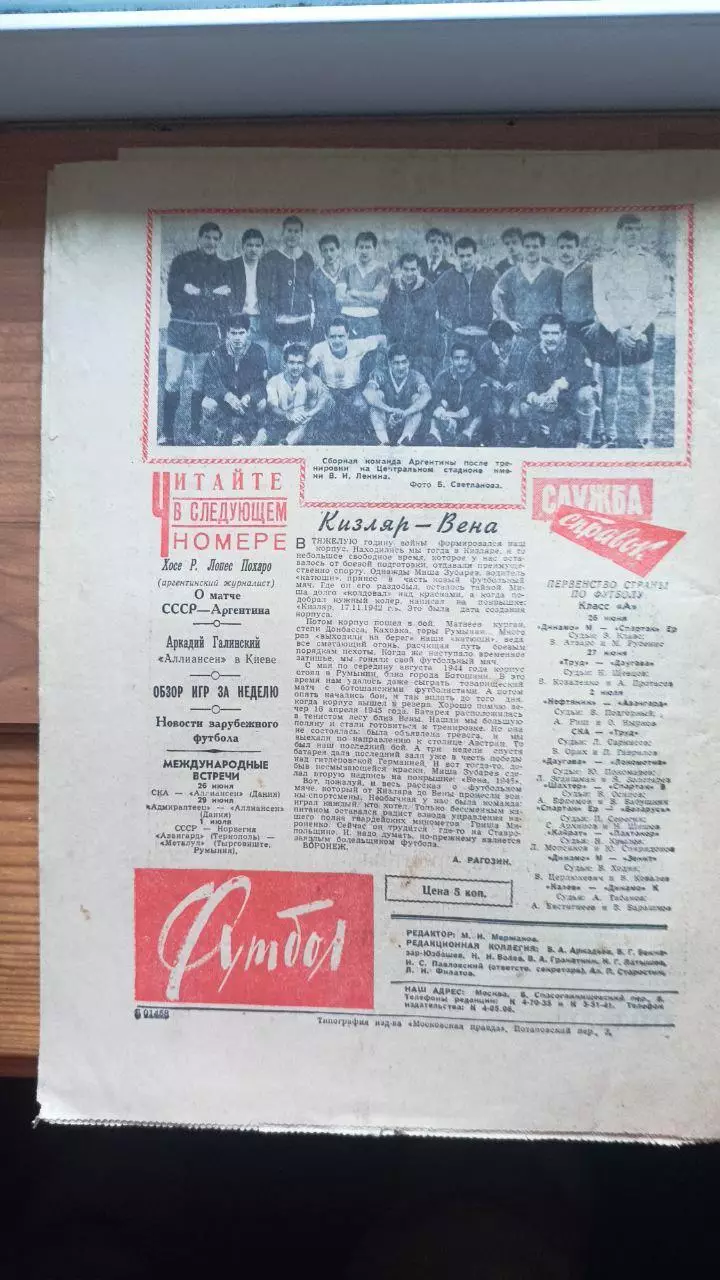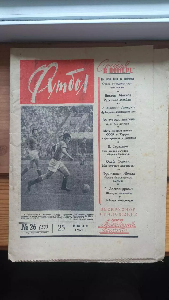 Еженедельник Футбол 1965, № 34, часть текста на обложке – красного цвета.