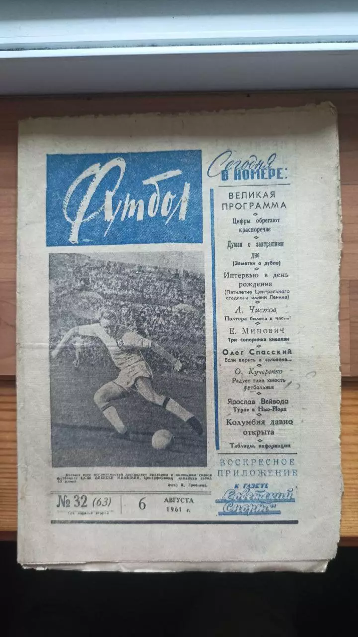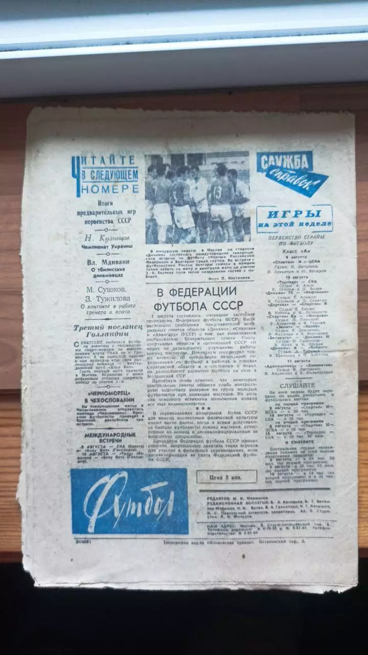 Еженедельник Футбол 1965, № 34, часть текста на обложке – красного цвета.