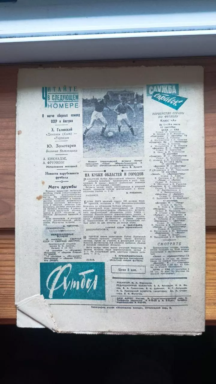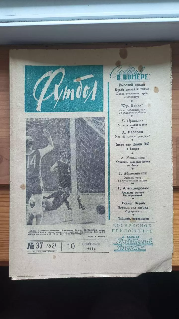 Газета Футбол (СССР) №37 (68) 1961 год