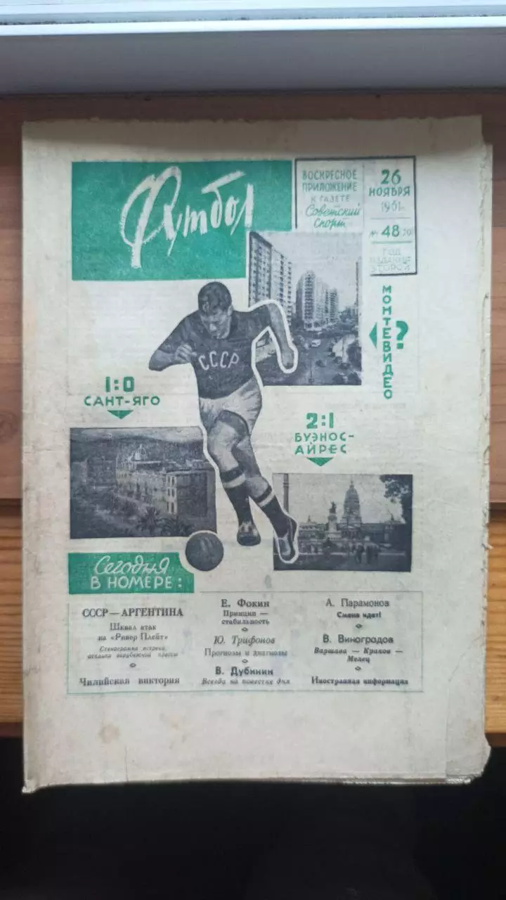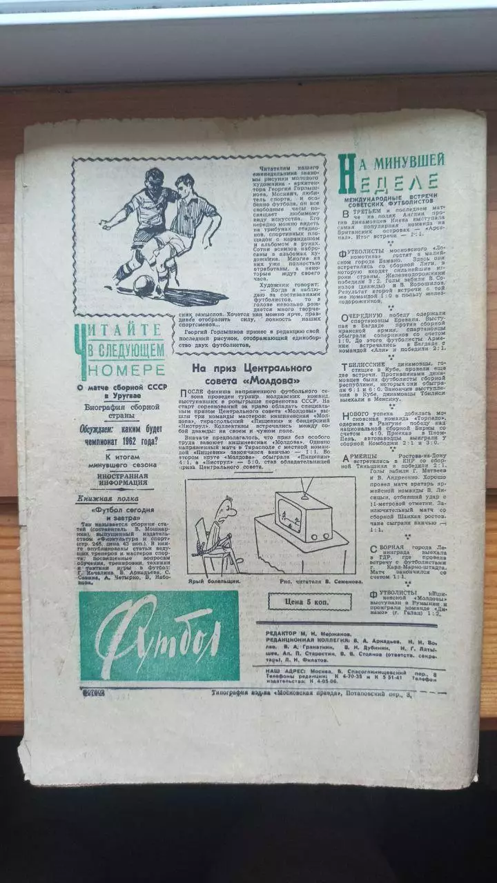 Еженедельник Футбол-Хоккей 1966, № 36, часть текста на обложке зеленого цвета.