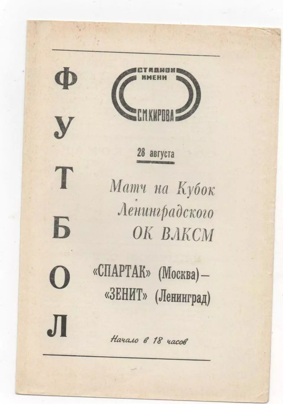 Зенит (Ленинград) - Спартак (Москва) - Кубок Ленинградского ОК ВЛКСМ - 1972.